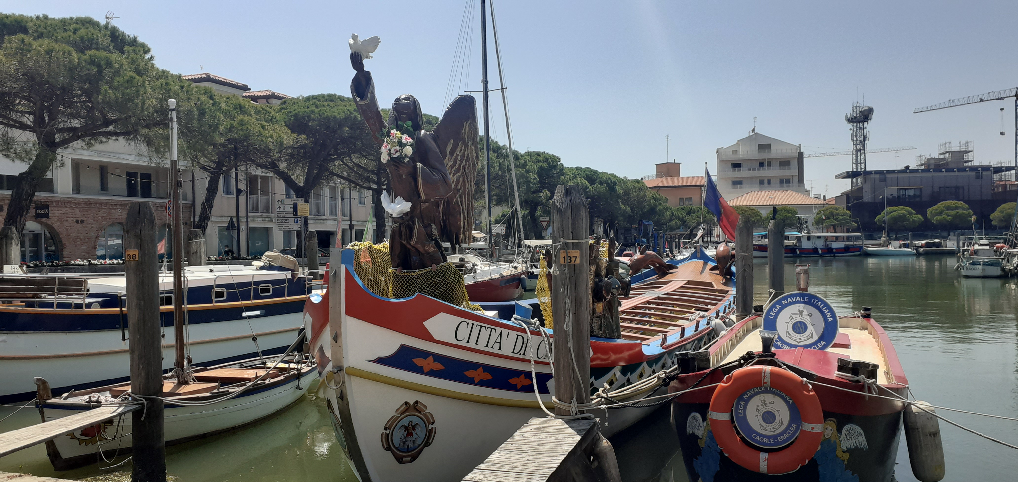 Partenza da Pordenone per completare un giro a goccia di 128 Km. Essendo un giro in solitaria ho preferito fare solo le provinciali e sterrato per soli 4 km avvicinandomi al fiume Lemene tra Concordia Sagittaria e Maranghetto. Le principali cittadine che mi hanno maggiormente interessato sono state Portogruaro, Porto Santa Margherita e Caorle. Nel particolare Portogruaro e Concordia Sagittaria sono collegate dal fiume Lemene che è navigabile con imbarcazioni a basso pescaggio ed in verità ne ho viste molte muoversi lungo il fiume per tutta la giornata. Concordia Sagittaria in epoca romana era una fabbrica di frecce e si nota per la presenza del Battistero costruito nel XI° secolo. Portogruaro ricorda molto Pordenone con le sue stradine e portici a volta bassa ed una piazza in cui troneggia la torre del Duomo di Sant’Andrea del 1800. Caorle e Porto Santa Margherita sono località balneari organizzatissime con un porto turistico ed uno di pescatori che offrono banchine di ormeggio e servizi per la nautica in modo completo. Caorle inoltre ha molte spiagge e stabilimenti alle cui spalle si notano hotel e residences di tutti i tipi. Il centro storico di questa cittadina è caratterizzato da calli e piazzette ricche di ristoranti e trattorie e si possono facilmente localizzare il Duomo con la sua torre campanaria del XI° secolo e la chiesa della Madonna dell’Angelo del 1751 dedicata a San Michele Arcangelo sita sulla parte finale del lungomare e subito adiacente alla grande spiaggia libera di Caorle.