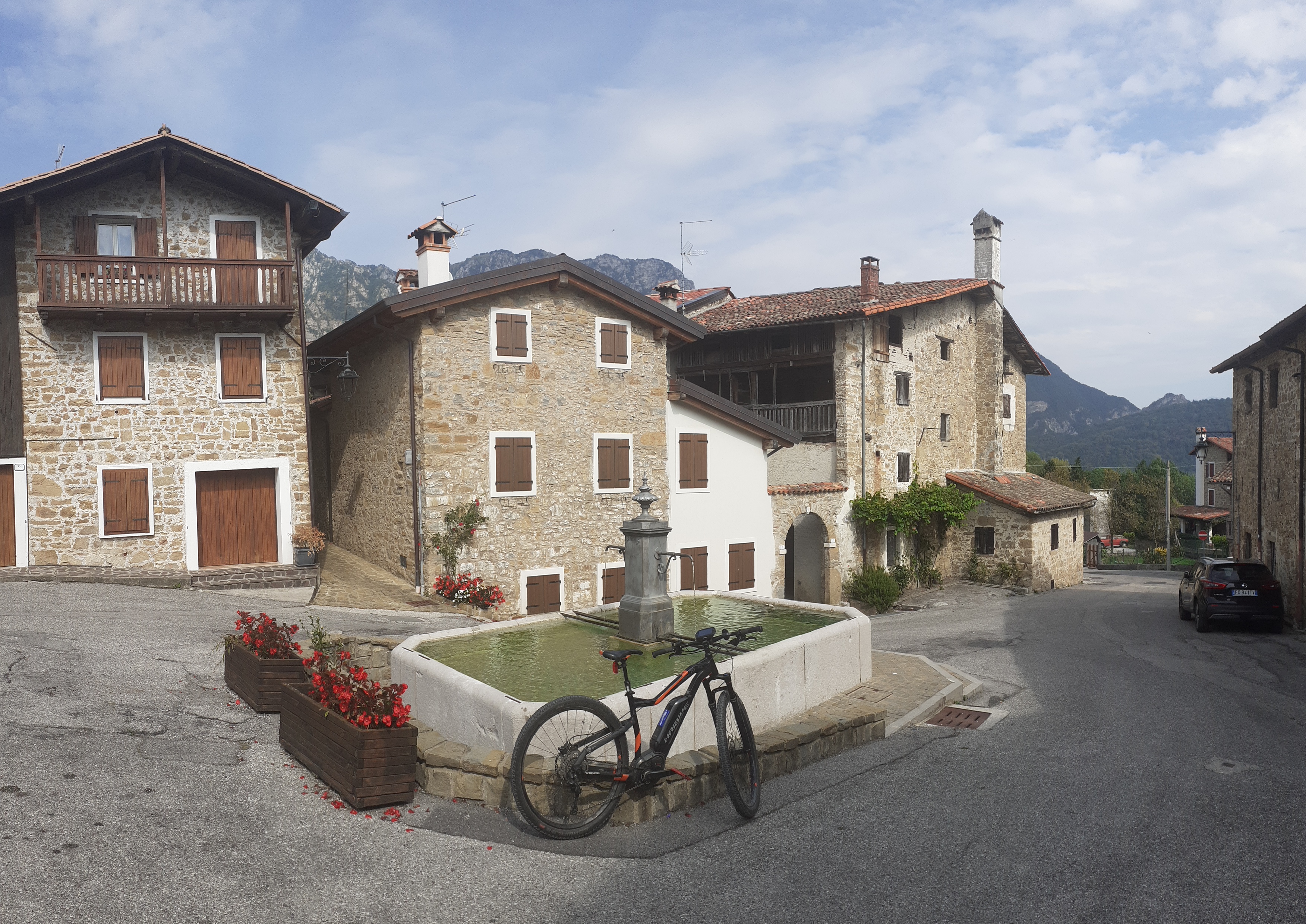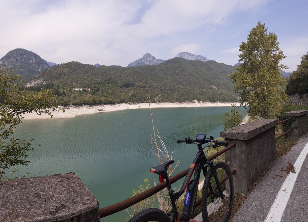 Meravigliosa pedalata nel Parco delle Dolomiti Friulane e in Val Tramontina passando all’andata per le cittadine di Vajont e Maniago e tornando invece per i borghetti di Meduno e Fanna. Visita ai borghi di Poffabro e Frisanco riconoscibili per le loro casette in pietra e legno e prive di palazzi. Durante il periodo natalizio in questi due paesi si realizzano dei bellissimi presepi sfruttando lo scenario naturale dei paesi che rendono unica e speciale la visita a questi posti. Poffabro in particolare è nella lista dei borghi più belli d’Italia. Da Maniago per arrivare in questi due borghi le strade sono pulite e poco trafficate ed è molto facile incontrare runners e riders che utilizzano tutti i percorsi ed i sentieri dedicati a questi sport. Spettacolare è stato il panorama che dalla località di Romanis introduce al Lago di Redona un lago artificiale costruito negli anni ’50 per produrre energia elettrica. Pedalando lungo la provinciale che costeggia il lago si può anche ammirare una casa diroccata in pietra posta nel centro del lago a testimonianza degli antichi borghi di Movada, Fleur e Redona Vecchia che furono sacrificati per la costruzione del bacino artificiale che sbarrava il torrente Meduna. L’acqua del lago è pulitissima e con dei bellissimi colori. Il giro è stato impegnativo e si è sviluppato su una lunghezza di 110 km con 1070 mt. di dislivello.