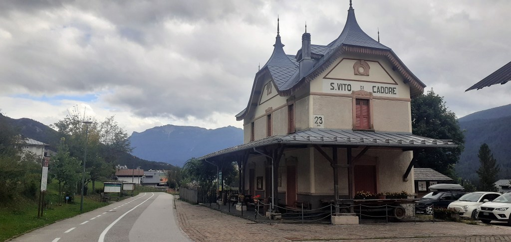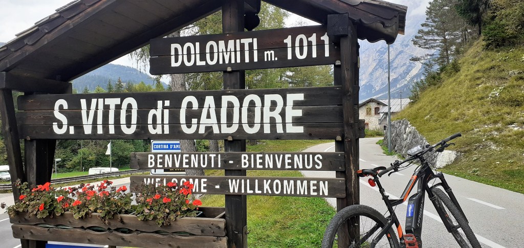 Principali protagonisti di questa mia avventura sono state le gigantesche montagne del Monte Antelao (3264 mt.) e del Monte Pelmo (3172 mt.) situati uno di fronte all’altro lungo il tratto della ciclabile che va da Peaio fino a San Vito di Cadore ed il Fiume Boite che alimenta il bacino artificiale del Lago di Vodo di Cadore. Non meno importanti anche le stazioncine e le gallerie che ho attraversato dove prima transitava la ex-ferrovia a scartamento ridotto Calalzo/Dobbiaco (antica tecnica costruttiva delle linee ferroviarie montane dove c’erano percorsi molto tortuosi e sinuosi che utilizzavano treni a ruote piccole). A fine giro mi sono poi concesso un’ultima sosta prima del rientro, a Pieve di Cadore in corrispondenza del Forte Monte Ricco situato a 953 mt. da cui si ha una bellissima panoramica delle due vallate del Piave e del Boite che qui ai piedi del monte omonimo si incontrano, ma che principalmente ha rappresentato una struttura difensiva utilizzata fino alla Prima Guerra Mondiale contro l’Impero Austro -Ungarico, dotata di ben 4 cannoni e altrettanta artiglieria a tiro rapido per la difesa delle mura e del fossato. Inoltre il forte è stato nel XV° secolo anche la sede del Doge della Serenissima Repubblica di Venezia. Complessivamente la ciclabile delle Dolomiti in questo prima metà del percorso, si presenta con molti pezzi asfaltati e poco sterrato, concentrato quest’ultimo prevalentemente in qualche chilometro prima dell’arrivo a Cortina d’Ampezzo nella quale mi sono concesso un breve riposo “rifocillatorio” al Bar/Hotel Ciasa Lorenzi.